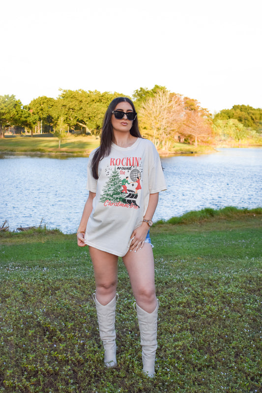 Rockin' Around Tee- Vintage Christmas Graphic T-Shirt